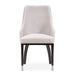- Sleek tapered legs with silver accents complete the chair's contemporary elegance.