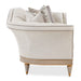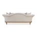 AICO Furniture St.Charles Sofa in Dove Gray 9088815-CIRUS-803. The Saint Charles Sofa is a masterpiece of craftsmanship, featuring a gracefully arched back with a distinctive tufted design that adds both visual interest and tactile comfort. The chenille fabric envelops the sofa's form, offering a luxuriously soft touch, while the contrasting welt on the body frames the piece in sophistication. The accompanying decorative pillows echo the sofa's color palette and texture, completing the look with elegance and style.