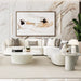 - The high-sheen cloud white lacquer surface not only adds a sleek touch but also reflects light beautifully, brightening any space.