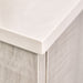 AICO Marin Dresser in Greige KI-MRIN050R-139. Generously scaled with 6 velvet lined drawers, the Marin dresser is adorned with contrasting cultured marble top, stainless accents on case front, and stainless-steel feet. The self-closing glides offer ease of function.