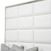 Aico State St Upholstered Cal King Panel Bed in Glossy White 9016000CKP-116. State St. Addresses the style conscious contemporary customer looking for sleek, hip design. Elements of minimalist modern combine with glass, stainless steel and acrylic providing a unique style. Sensibly scaled for today's modern spaces, the collection offers a fresh, clean approach to contemporary lifestyle.