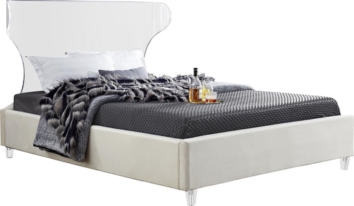 MeridianThere's nothing scary about the Ghost cream velvet queen size bed, with its plush cushioned and upholstered side rails and footboard. A curved tran...