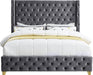 Savan Purple Velvet Queen Bed - Rich Purple Velvet - Deep Button Tufting - Gold and Chrome Legs Included with Each Bed - Full Slats (No Box Spr...