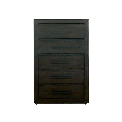 Casually cool style and lots of storage go hand in hand with this chest of drawers. A weathered brown finish over replicated oak grain creates an e...