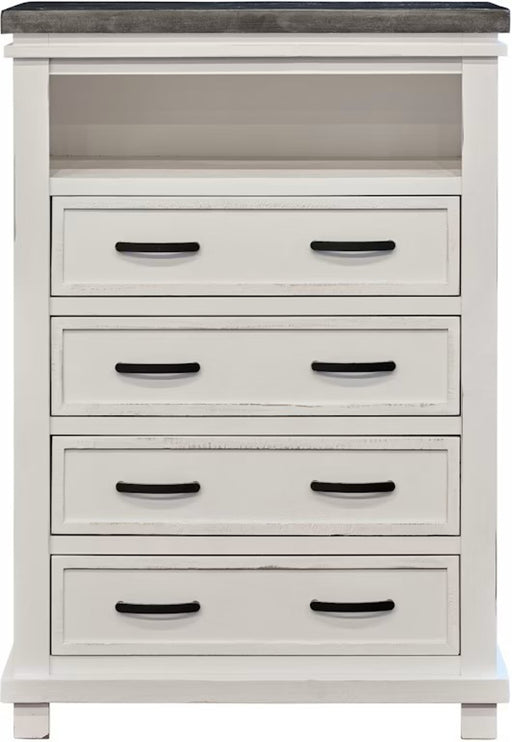 Get the look of posh barn wood without setting foot in a salvage yard. Replicated rough-sawn oak of this chest of drawers has a vintage finish that...