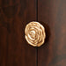 AICO Furniture Camellia Field Dresser in Warm Pecan 9090050SA-400. Grace your bedroom with a dresser that exudes romance and practical charm. This piece blends functionality with artistry with its gently curving silhouette, rich dark walnut finish, and distinctive camellia flower hardware. The black marble top adds a refined touch, while the velvet-lined drawers and adjustable shelving create a haven for your wardrobe essentials. Let this dresser become the heart of your bedroom's serene retreat.