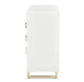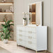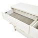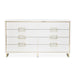 AICO Furniture Palm Gate Dresser in Cloud White 9086050SA-108. The Palm Gate Dresser, featuring Japan gold accents, eight spacious drawers, and stylish double handles, combines practicality with grandeur, creating a striking aesthetic.