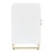 AICO Furniture Palm Gate Nightstand in Cloud White 9086040-108. Our Palm Gate Nightstand blends functionality and elegance. With gold accents, thoughtfully placed handles, and two velvet-lined drawers housed within a pristine acrylic body, it's a stylish addition to any bedside.