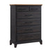 The Montrose Chest in Espresso and Brown effortlessly blends timeless design elements with modern practicality. The aesthetic dual-toned finish adds visual interest, while the high-quality pine veneer enhances durability. Felt-lined top-row drawers provide extra protection for your delicate items, and metal drawer pulls add a sophisticated, industrial touch. To further this piece's appeal, drawer boxes feature skillful dovetail construction and smooth ball-bearing glides. For a refined and practical addition to your bedroom, the Montrose Chest delivers in both quality and style. Features: • Pine Veneer Enhances Durability • Aesthetic Dual-Tone Finish • Top Drawer with Protective Felt Lining • Drawers with Skillful Dovetailing & Ball Bearing Glides • 40"W x 18"D x 54"H • Due to Lighting, Product Color May Slightly Vary from Images Dimensions: Depth: 18.0" x Width: 40.0" x Height: 54.0" Weight: 160.0 lbs.
