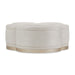 AICO Malibu Crest Cocktail Ottoman in Chardonnay N9007879-DOSKN-822. The Malibu Crest Ottoman is a versatile, elegant accent with faux suede fabric in a lovely Doeskin color. This soft, clover-shaped piece is firm enough to double as a cocktail table while remaining comfortable to sit or prop your feet on. You'll love the glamorous Chardonnay base finish and how this design will enhance your luxury space.