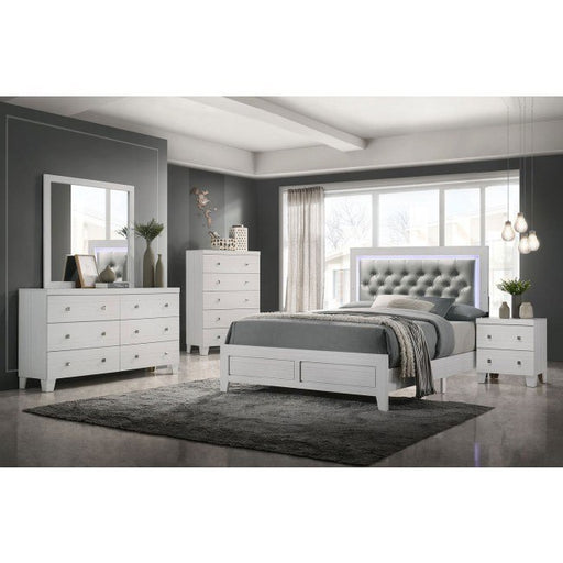Crown MarkSarter Collection by Crown Mark Weathered Gray finish Decorative louver detail on headboard panel Sitting on top of tapered feet Mattress and ...