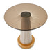 AICO Furniture St.Charles Chairside Table in Dove Gray 9088222-803. The Saint Charles Chair Side Table is not only a marvel in its streamlined form but also in its detailed design. The pencil edge glass top reveals a striking sunburst pattern and adds an artistic touch to the piece. This design detail radiates from the table's center, casting intriguing shadows and adding an element of visual interest to its minimalist silhouette.
