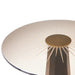 - The table’s pedestal and bronze finish echo the rays of the sunburst motif.