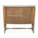 - Hoop drawer pulls, feet and stretcher are finished in Chardonnay