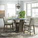 The simply stunning Dapper Round Counter is perfect for entertaining multiple guests at dinner or having a casual brunch. Topped off with a sleek, clear glass tabletop, this rectangular glass dining table displays an abundance of style. The arched walnut legs come with a storage shelf through the center for added support, and the sharp, minimalist lines add a chic, modern vibe to your space. Dress up this exquisite dining table with a floral centerpiece for a pretty pop. Features: • Round Table • Counter Height • Glass Table Top • Pedestal Base • Grey Finish • Transitional Style Dimensions: Depth: 54.0" x Width: 54.0" x Height: 36.0" Weight: 124.0 lbs.