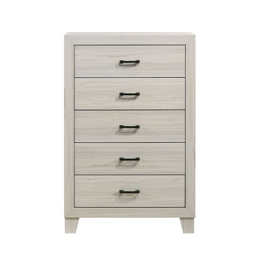 ACME EastACME Deoss Chest, White, 32" x 16" x 52"H, 111lbs. This beautiful Deoss chest of drawers boasts of contemporary style, five drawers with metal draw...