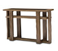 • Features a beveled glass top with a wooden trim in Boardwalk finish