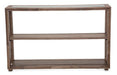 Hudson Ferry Collection by AICO Furniture Driftwood finish Constructed with Acacia wood solids and veneer Glass diamond pattern top Open bottom sh...